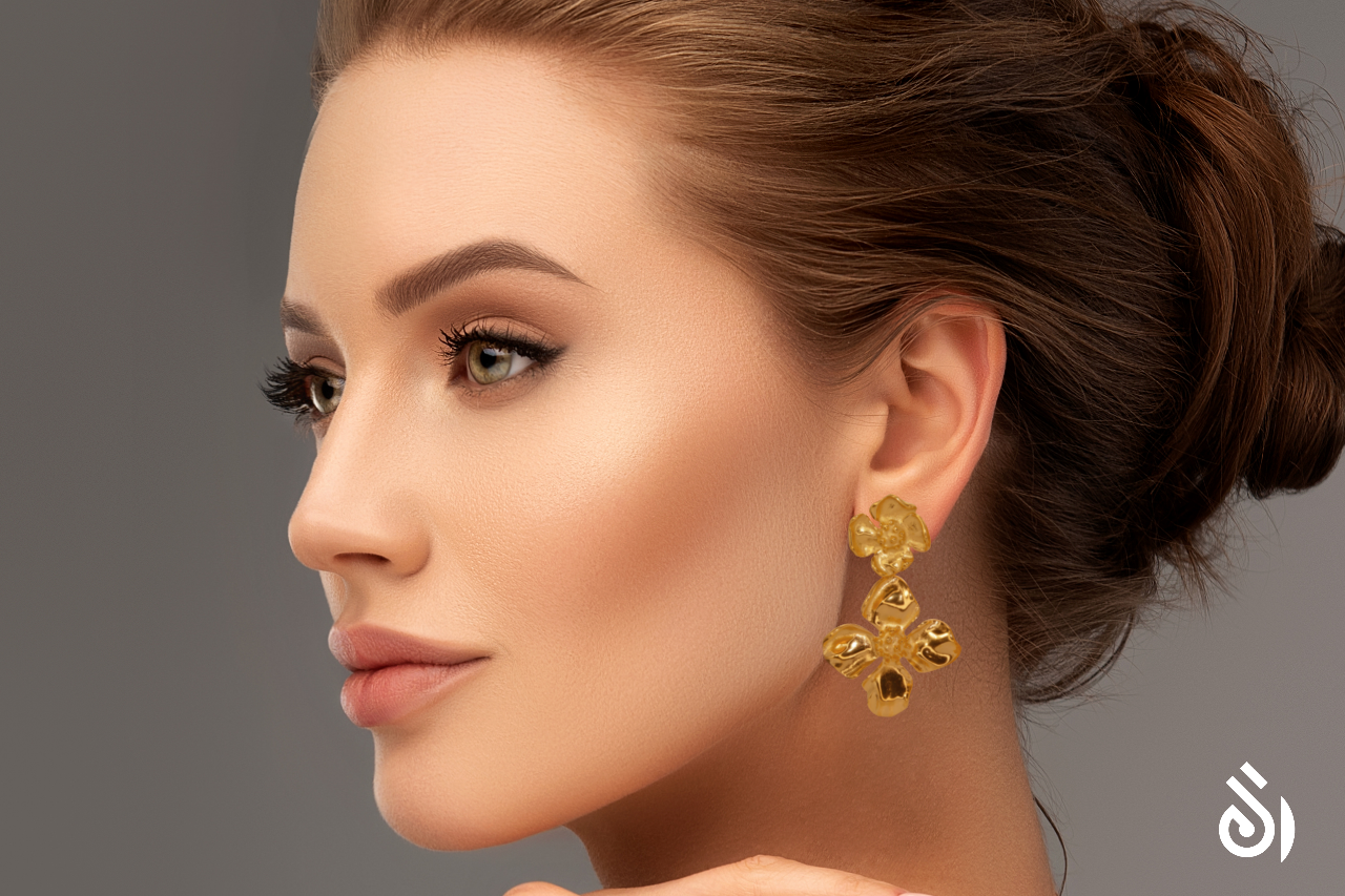 - Runde Gesichtsform: Längliche Ohrringe oder eckige Designs strecken das Gesicht optisch.